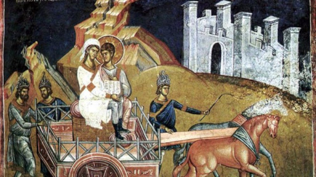A questo punto il narratore si sofferma a presentarci il personaggio del funzionario regale. Egli è il “tesoriere” della Regina di Etiopia, che ha il titolo di Candace ed è eunuco. Da notare che il termine tesoro in greco (gaze) suona come la città di Gaza. Con un gioco fonetico il narratore vuol forse alludere al fatto che in questo viaggio al funzionario sarà dato da amministrare ben altro tesoro… Che la tonalità “esotica” di questa presentazione, un po’ altisonante, sia voluta da Luca per attirare l’attenzione del lettore, non stupisce. L’Etiopia era meta di viaggi nel I secolo, alla scoperta delle sorgenti del Nilo. Ma ciò che importa suggerire a Luca è che la Parola per mezzo di questo incontro inaspettato e improvviso, è destinata a giungere fino ai confini del mondo (cf. At 1,8), fino al lontano regno di Etiopia. Si compiono così le parole del profeta Isaia che aveva profetizzato l’arrivo a Gerusalemme degli Etiopi, con le loro ricchezze (Is 45,14), per supplicare il Signore e convertirsi al Dio d’Israele. Non a caso questo funzionario regale è presentato da Luca come un timorato di Dio, che si reca a Gerusalemme per adorare, ossia per partecipare in certo modo al culto, secondo le modalità previste per i timorati non ebrei. Egli viene denominato come eunuco, qualifica che non necessariamente implica una castrazione, perché nella LXX e anche altrove indica spesso alti funzionari politici e militari, anche se era molto frequente che gli alti funzionari delle regine fossero anche evirati. Il dettaglio, al di là della materialità, è molto importante perché, secondo Dt 23, 2 l’eunuco non può entrare nella comunità del Signore, cioè essere circonciso. Il profeta Isaia aveva però annunciato un tempo in cui stranieri e eunuchi possono essere a tutti gli effetti considerati parte del popolo dell’alleanza ed entrare nella casa, ossia nel tempio (cf. Is 56, 3-8; cf. anche Sap 3, 14).