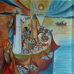 Gesù non nega questa distanza ma esorta Pietro a non temere, a fidarsi della sua parola che lo chiama a prendere vivi gli uomini. Solo la parola di Gesù colma la distanza tra Dio e l’uomo e la fede di Pietro in essa lo renderà capace essere pescatore di uomini, in modo unico e straordinariamente fecondo. Il verbo che viene tradotto con “pescatore” (zogrèo) significa “prendere vivi” e si usa in un contesto di guerra per indicare i nemici quando vengono fatti prigionieri senza essere uccisi (cfr. Nm 31,18), oppure può significare qualcuno che viene rianimato e gli viene resa la vita. Pietro e gli apostoli, come tutti i missionari cristiani, sono coloro che, per mezzo della parola di Dio, saranno in grado di catturare gli uomini per la vita (cfr. At 5,20).